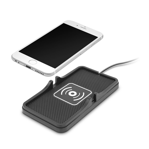 Easily charge your phone wirelessly by simply placing it on this mat. Doubles as a horizontal phone holder as well. Featuring an anti-skid bottom, this charging mat is compatible with iPhone and Android smartphones that support wireless charging. Operates with USB power supply. Fits smartphone size within 3" wide x 6.5" long.