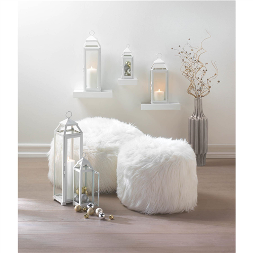 Add eye-catching texture to your decor with this fun white faux fur ottoman. The large round ottoman is completely covered in white faux fur for a trendy look that will complement both modern and laid-back decor. The white ottoman is filled with foam beads for a comfortable feel you can sit or rest your legs on. Spot clean only.