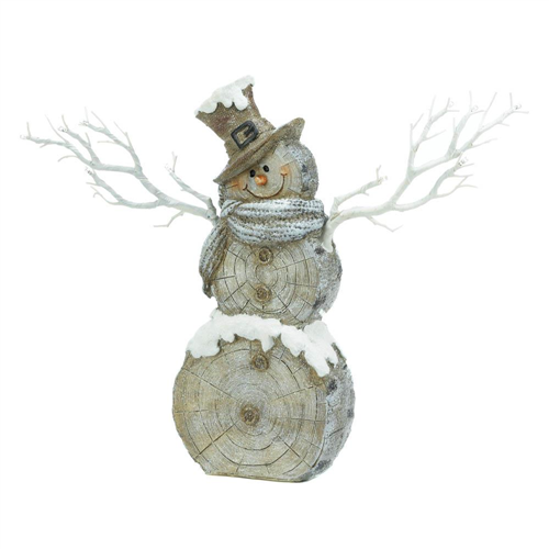 Bring on winter with fun decor pieces like this adorable snowman statue. This snowman figurine features a rustic design with a birch tree body and twig arms with LED lights. A festive seasonal piece, this decorative tree trunk snowman will make you smile throughout the entire winter season. Requires 2 AA batteries not included.