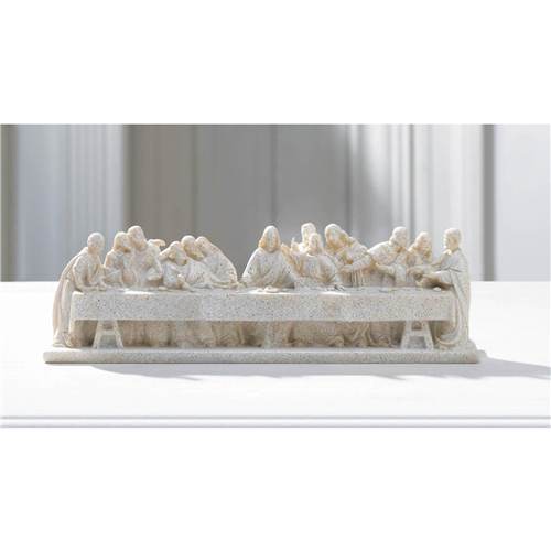 A captivating depiction of the Last Supper, this figurine will make a treasured keepsake for your collection. The figurine's neutral speckled ivory finish and intricate detailing offers a stunning recreation of the famous painting. This Last Supper statue is a beautiful way to commemorate a baptism, birthday or wedding.